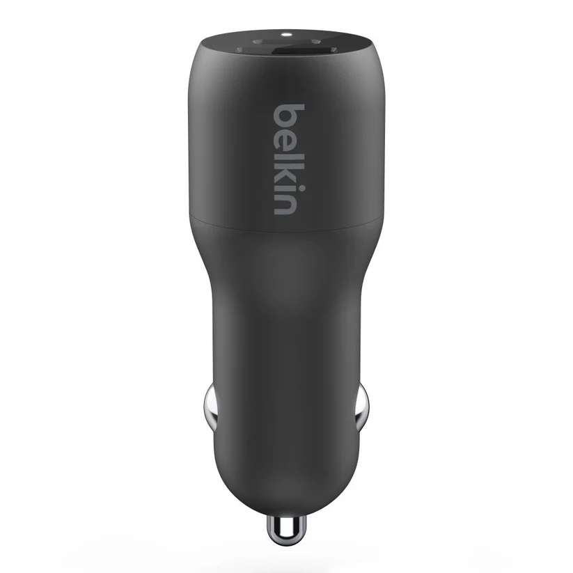 El cargador para automóvil dual Belkin de 37 W es un accesorio diseñado para cargar dos dispositivos simultáneamente mientras conduces, ofreciendo potencia y seguridad con tecnología avanzada de carga rápida.